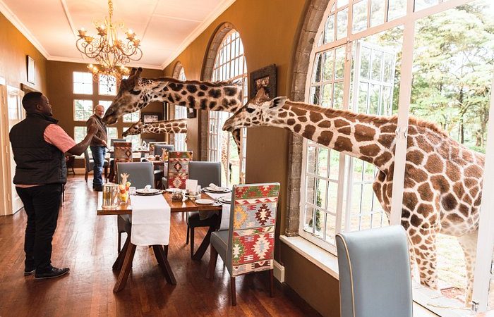 At this exclusive boutique hotel, endangered Rothschild giraffes poke their heads through the windows to share breakfast with guests. The hotel is located within a protected sanctuary where these giraffes are carefully cared for and conserved.